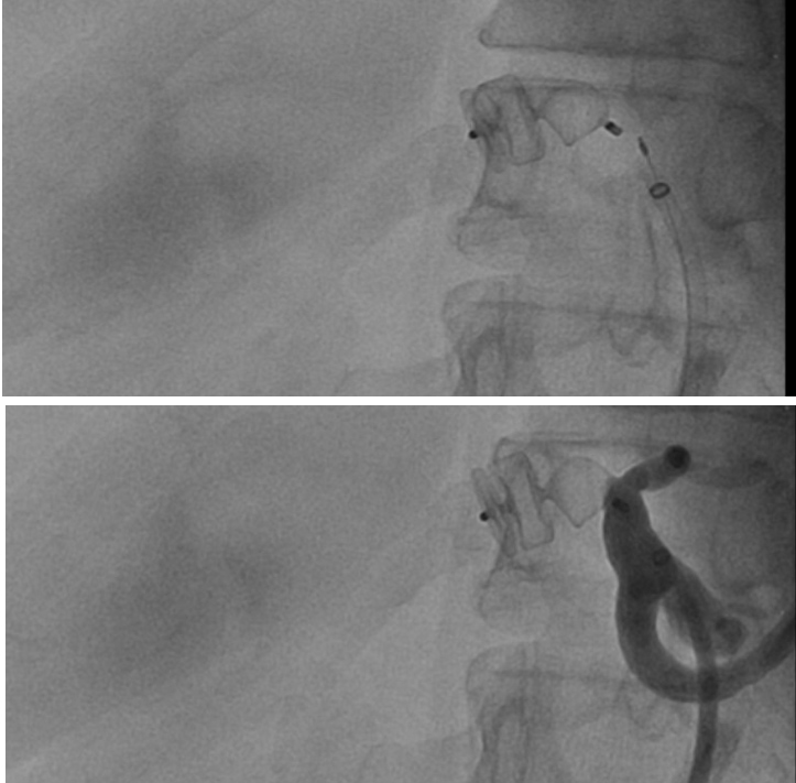 - Angiografia: Um exame invasivo que permite visualizar a artéria hepática e o aneurisma com o uso de contraste radiopaco. Permite evidenciar o tamanho, a forma e a localização do aneurisma, permitindo uma programação terapêutica, além de delimitar a eventual presença de circulação colateral.